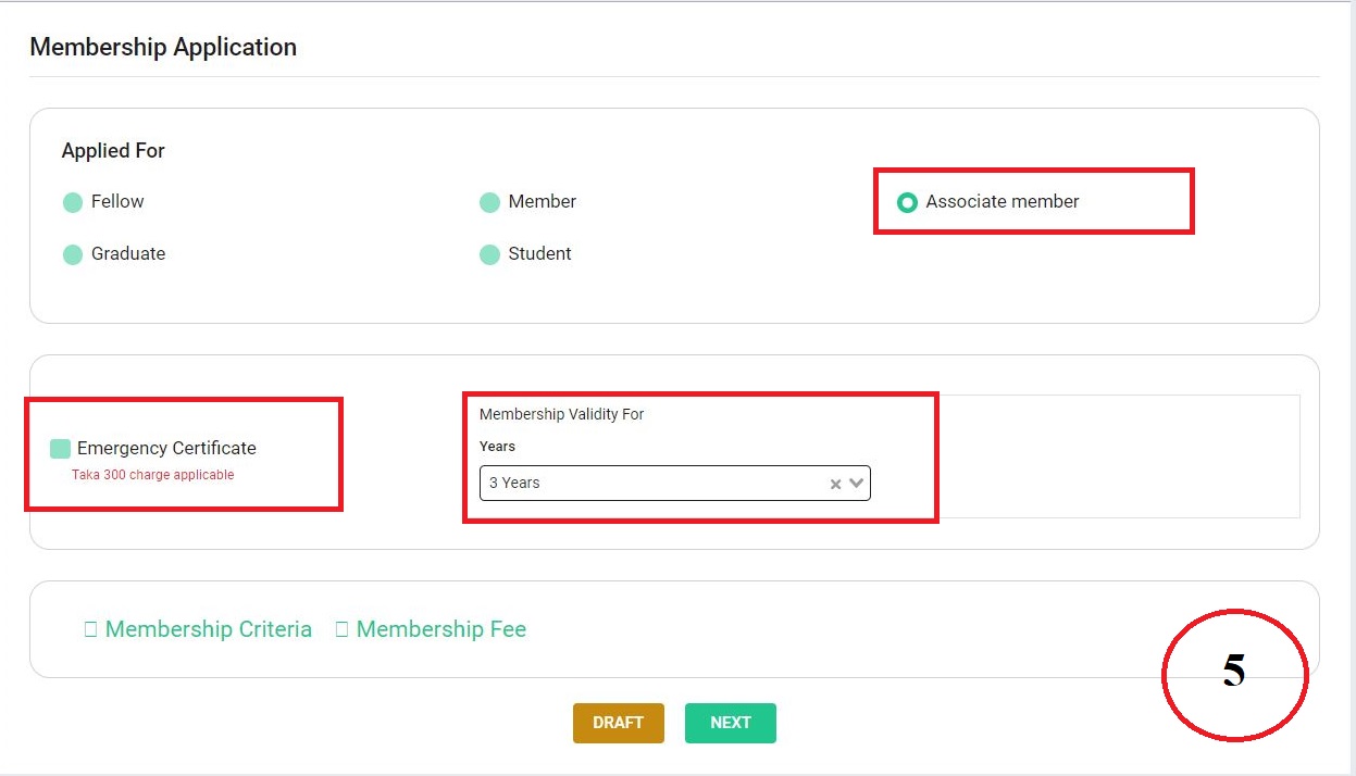 (৫) Shortcut Menu থেকে Applied For এ গিয়ে আপনার Applied For ও Membership validity সিলেক্ট করে Next এ যান।